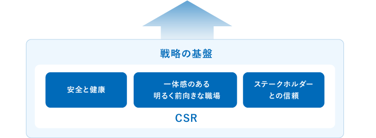 • 安全と健康を最優先に、一体感のある明るく前向きな職場をつくるとともに、ステークホルダーの声に耳を傾け信頼関係を構築し、経営に反映していく